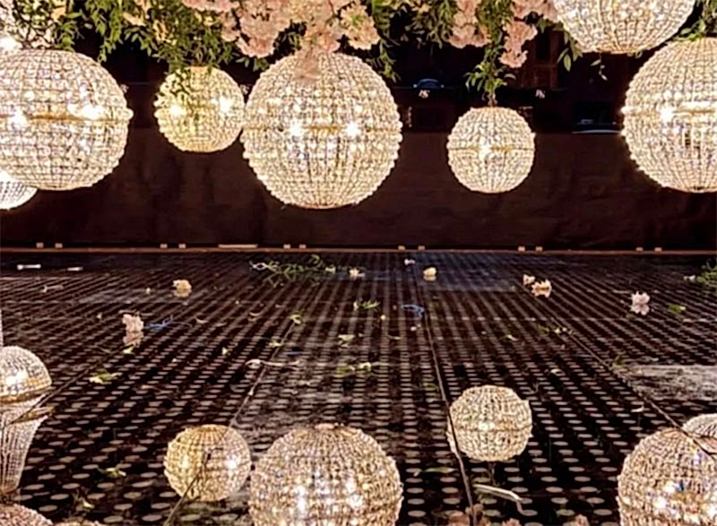 Avizeler, özellikle dış mekân organizasyonlarında ışıklandırma sistemiyle birlikte kullanıldığında büyüleyici bir atmosfer oluşturur.